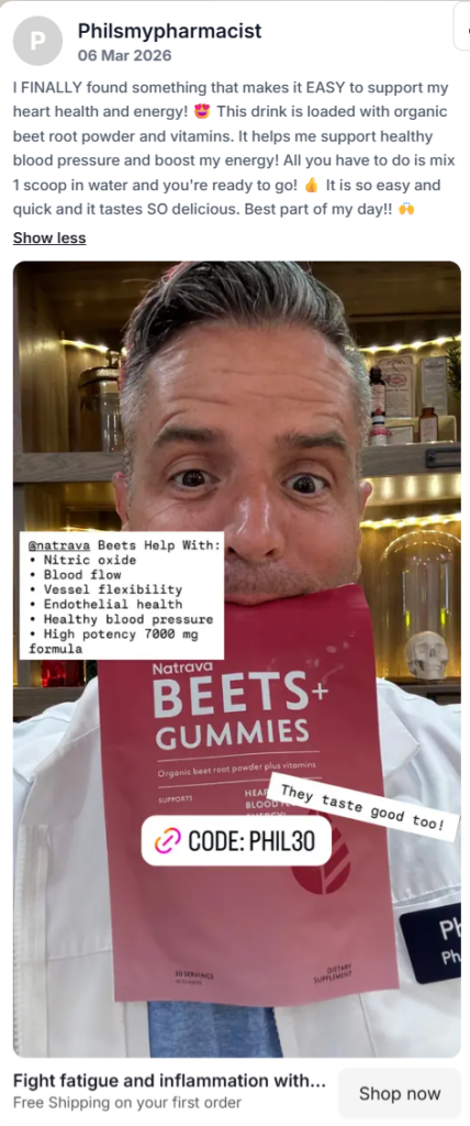 A pharmacist wearing a lab coat or testimonials from health experts both add authority.